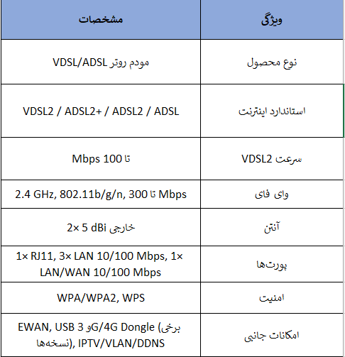 پشتیبانی از VDSL2 Profile 30a با حداکثر سرعت دانلود تا 100 Mbps که تا 4× سریعتر از ADSL2+ است.