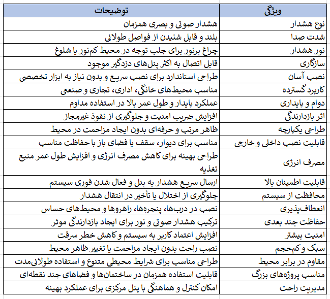 این اعلام و هشداردهنده برای محیطهای خانگی، اداری، تجاری و صنعتی مناسب است. توان هشدار صوتی و نور پرنور باعث میشود دستگاه در محیطهای حساس و پررفتوآمد نیز عملکرد مؤثر داشته باشد و سطح امنیت را افزایش دهد.