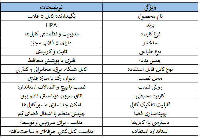 نگهدارنده کابل ۵ قلاب HPA انتخابی مناسب برای پروژههایی است که در آنها نظم، دقت اجرا و قابلیت توسعه کابلکشی اهمیت ویژهای دارد. طراحی اصولی، ساختار مقاوم، کاربرد گسترده و سهولت نصب، این محصول را به یکی از تجهیزات کارآمد در مدیریت کابلهای شبکه و برق تبدیل کرده است. استفاده از نگهدارنده کابل ۵ قلاب HPA، زیرساختی منظم، استاندارد و قابل اعتماد برای اجرای پروژههای حرفهای فراهم میآورد.
