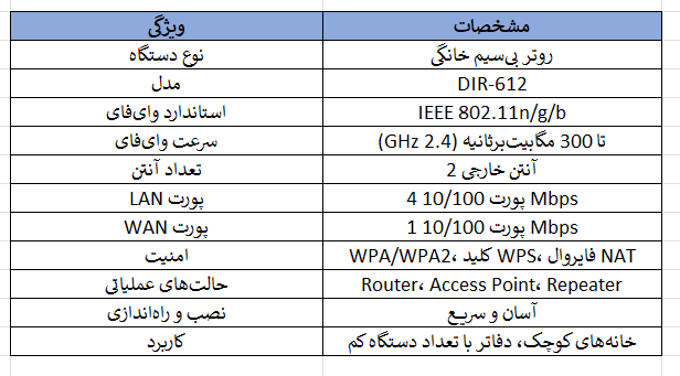 DIR-612 یک روتر اقتصادی و ساده با سرعت وایفای تا ۳۰۰Mbps است که برای استفاده روزمره خانگی مناسب میباشد.