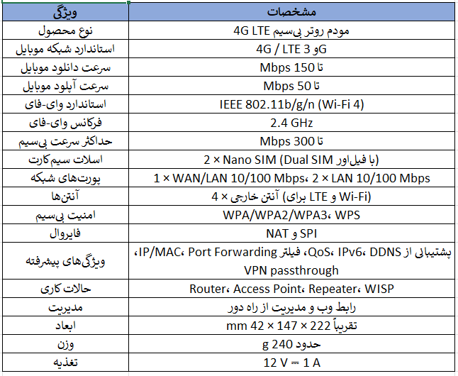 این مودم روتر از شبکه 4G LTE پشتیبانی میکند و با قرار دادن سیمکارت، اینترنت همراه را به یک شبکه بیسیم و کابلی تبدیل میکند. سرعت مناسب اینترنت 4G باعث میشود وبگردی، تماشای ویدیو، کلاسهای آنلاین و استفاده روزمره بدون اختلال انجام شود.