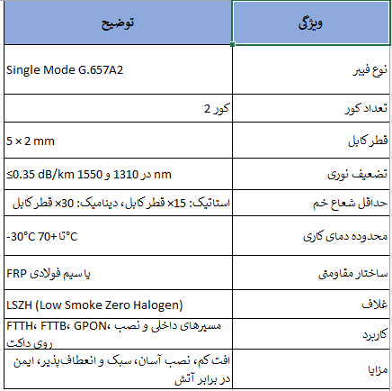 نوع: کابل دراپ فیبر نوری (Drop Cable)