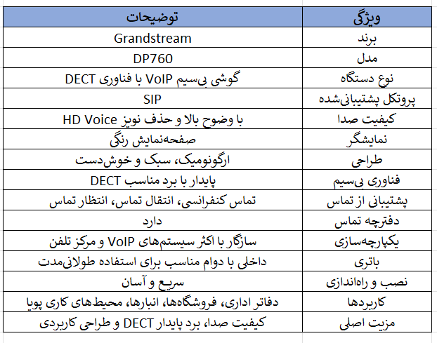 Grandstream DP760 یک تکرارکننده DECT حرفهای با برد بالا، پشتیبانی از PoE، کیفیت صدای Full HD و امنیت بالا است که برای گسترش پوشش تماس بیسیم در محیطهای بزرگ و چندطبقه طراحی شده است.