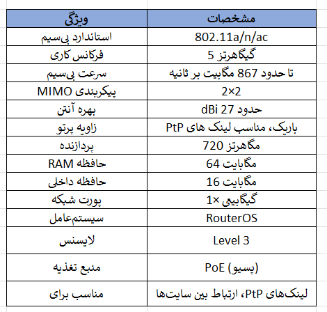 ویژگیهای کلیدی رادیو وایرلس MikroTik LHG XL 5 ac