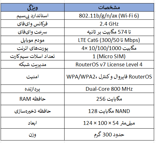 - مودم LTE: پشتیبانی از Cat6 با سرعت دانلود تا 300 مگابیت بر ثانیه.