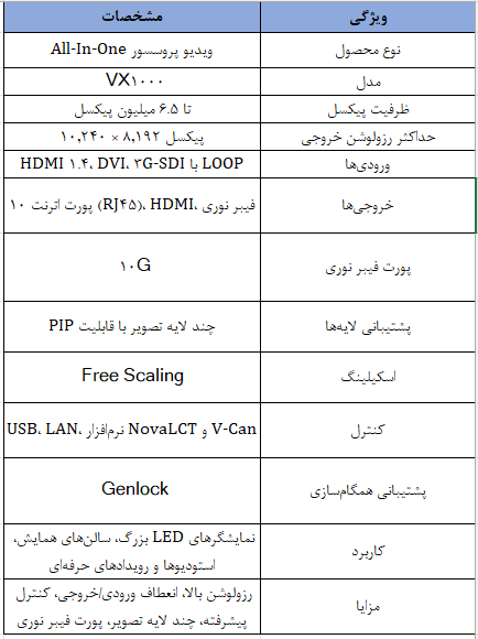 ویدیو پروسسور Novastar VX1000 یکی از گزینههای حرفهای برای مدیریت و پردازش ویدئو در نمایشگرهای LED بزرگ، سالنهای همایش، استودیوها و پروژههای رویدادهای زنده است. با پشتیبانی از رزولوشن بالا، امکانات گسترده ورودی و خروجی، کنترل پیشرفته و ظرفیت پیکسل بالا، انتخابی ایدهآل برای پروژههای حرفهای محسوب میشود. این پروسسور یک راهحل جامع و قابل اعتماد برای عملکرد قوی، انعطافپذیری و کیفیت تصویر بالا ارائه میدهد.