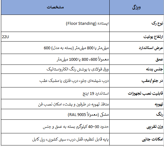- 22 یونیت: فضای کافی برای نصب تجهیزات شبکه.
