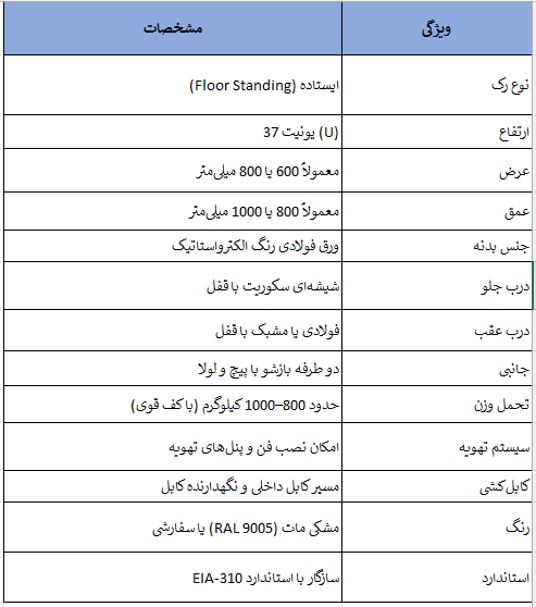 - عمق 100 سانتیمتر: مناسب برای تجهیزات استاندارد شبکه.