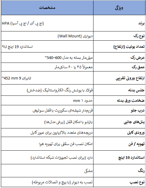 ویژگیهای کلیدی رک دیواری 9 یونیت HPA