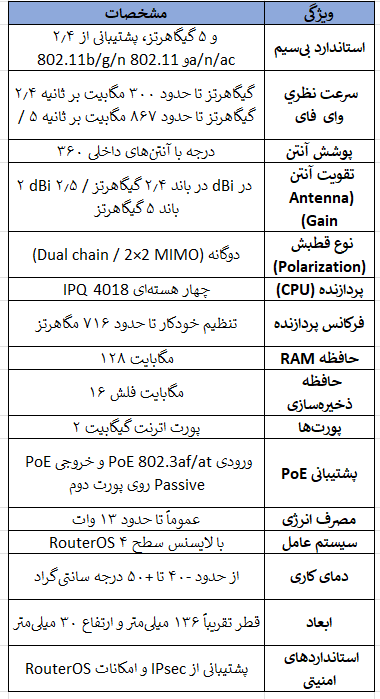 میکروتیک cAP ac یک اکسسپوینت بیسیم طراحی شده برای نصب روی سقف یا دیوار است که قابلیت ایجاد شبکههای وایفای پایدار و پرسرعت را فراهم میآورد. این دستگاه به دلیل ابعاد کوچک، طراحی جمعوجور و قابلیت پشتیبانی از چندین SSID برای استفاده در محیطهای تجاری، آموزشی و خانگی مناسب است.