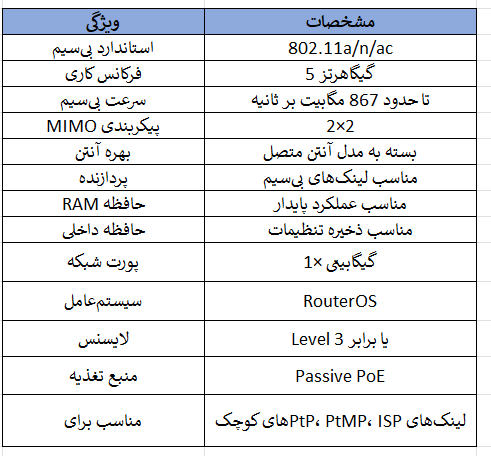 ویژگیهای کلیدی رادیو وایرلس MikroTik BaseBox 5