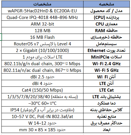 ویژگیهای کلیدی اکسس پوینت میکروتیک wAP ac LTE Kit