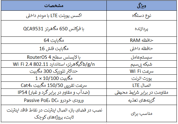 اکسس پوینت MikroTik wAP LTE Kit یک دستگاه مقاوم و انعطافپذیر با مودم LTE داخلی است که برای دسترسی به اینترنت پرسرعت در محیطهای بیرونی و متحرک طراحی شده است.