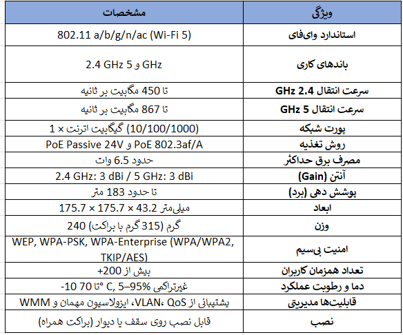 این اکسسپوینت یک راهحل مناسب برای شبکههای Wi‑Fi 5 است.