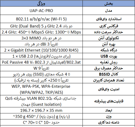 ویژگیهای کلیدی اکسس پوینت UniFi AP AC PRO
