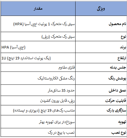 سینی متحرک 1U اچپیآسیا HPA یک انتخاب اقتصادی، کارآمد و سازگار با رکهای استاندارد برای مدیریت تجهیزات سبک در رکهای شبکه است. طراحی ریلی و کیفیت ساخت مناسب آن باعث میشود گزینهای مطلوب برای شبکههای کوچک و متوسط باشد.