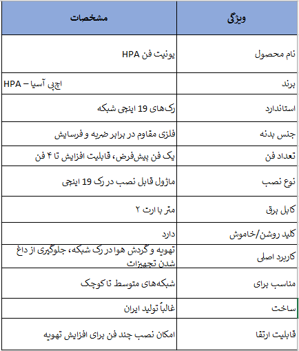 یونیت فن اچ پی آسیا – HPA پنل خنککننده چندفن قدرتمند برای کاهش دمای رک و حفاظت از تجهیزات شبکه و سرور است.