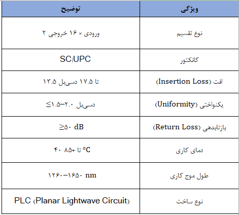 نوع تقسیم: 2 ورودی × 16 خروجی