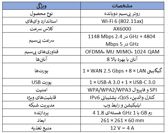 روتر تیپیلینک Archer AX6000 با ترکیب سرعت بسیار بالا، پوشش گسترده، امکانات حرفهای و نصب آسان، انتخابی عالی برای خانههای بزرگ و دفاتر شلوغ است. این روتر تجربهای پایدار، سریع و قابل اعتماد از اینترنت وایفای ارائه میدهد و نیاز کاربران به شبکه بیسیم با کیفیت را بهطور کامل برآورده میکند.