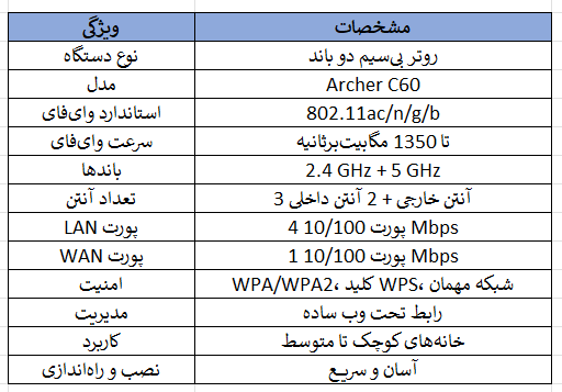Archer C60 از پروتکلهای امنیتی WPA/WPA2 پشتیبانی میکند و دارای کلید WPS برای اتصال سریع و ایمن دستگاهها به شبکه است. همچنین امکان ایجاد شبکه مهمان برای تفکیک کاربران فراهم است تا دسترسیهای جداگانه تنظیم شود.