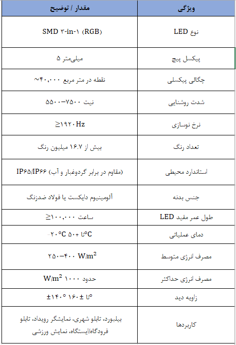ماژولهای P5 SMD Outdoor یکی از بهترین انتخابها برای نمایشگرهای بیرونی با کیفیت بالا هستند. آنها ترکیبی از روشنایی بالا، دوام محیطی، رنگهای زنده و نرخ نوسازی بالا ارائه میدهند که برای کاربردهای تبلیغاتی و اطلاعرسانی مناسب است. هزینه نصب و مصرف انرژی باید در طراحی پروژه لحاظ شود تا بازده سرمایهگذاری بهینه باشد.